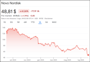 NovoNordisk, azienda multinazionale danese, leader nel settore farmaceutico con prodotti come #Ozempic e #Wegovy per la perdita di peso, sta affrontando un momento critico in Borsa.
