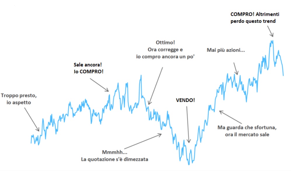 L’avversione alle perdite e l’avidità nei guadagni spingono molte volte l’investitore a farsi prendere dal panico sia in un senso che in altro ovvero vendere ai minimi o comprare ai massimi di mercato.